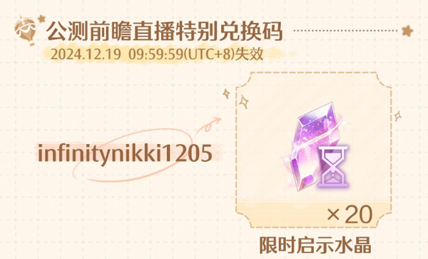 1.【兑换码:infinitynikki1205】20连抽