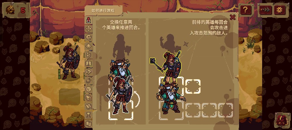 血盟守卫军2是一款以像素风格制作的回合制策略游戏。游戏中玩家需要操控四名英雄对抗恶魔军团,通过交换英雄位置触发攻击前排战斗后排恢复。在这里你的每一步行动都通过换人实现,而当后排英雄进入前排时将瞬间释放强大的姿态技能。游戏包含物理、火焰、魔法、死亡四种攻击类型,存在属性克制关系需策略搭配输出手段。