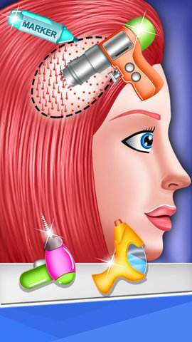 1、植发模拟器中玩家需要在顾客的头皮上植入很多的毛囊,让顾客展出新的头发。